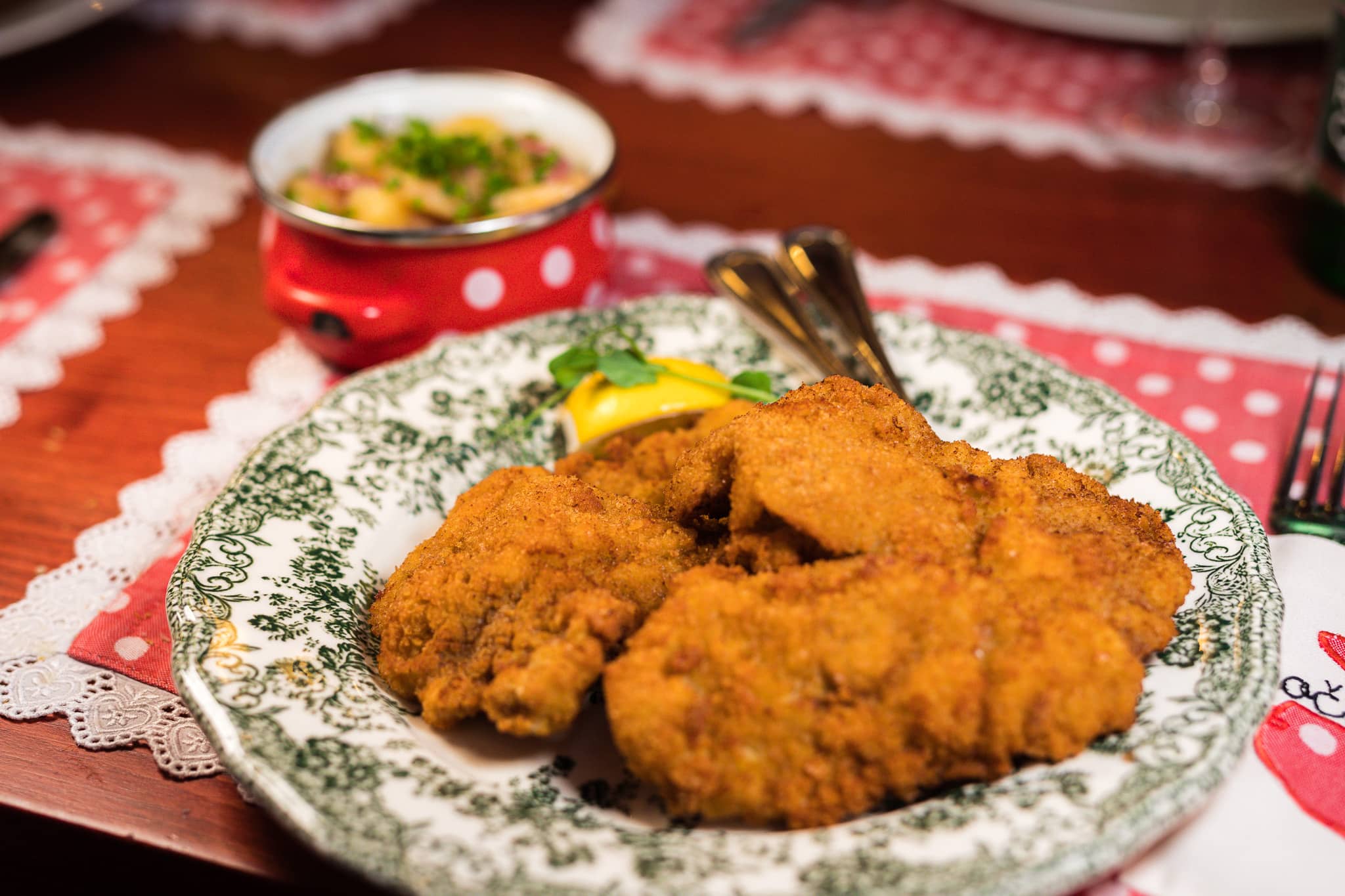 Probali smo i bečki odrezak, koji se kuha na svinjskoj masti te je pohan u krušnim mrvicama od kajzerice. Hrskava korica skriva izuzetno ukusno meso i poslužuje se uz krumpir salatu izrađenu po bečkom receptu.