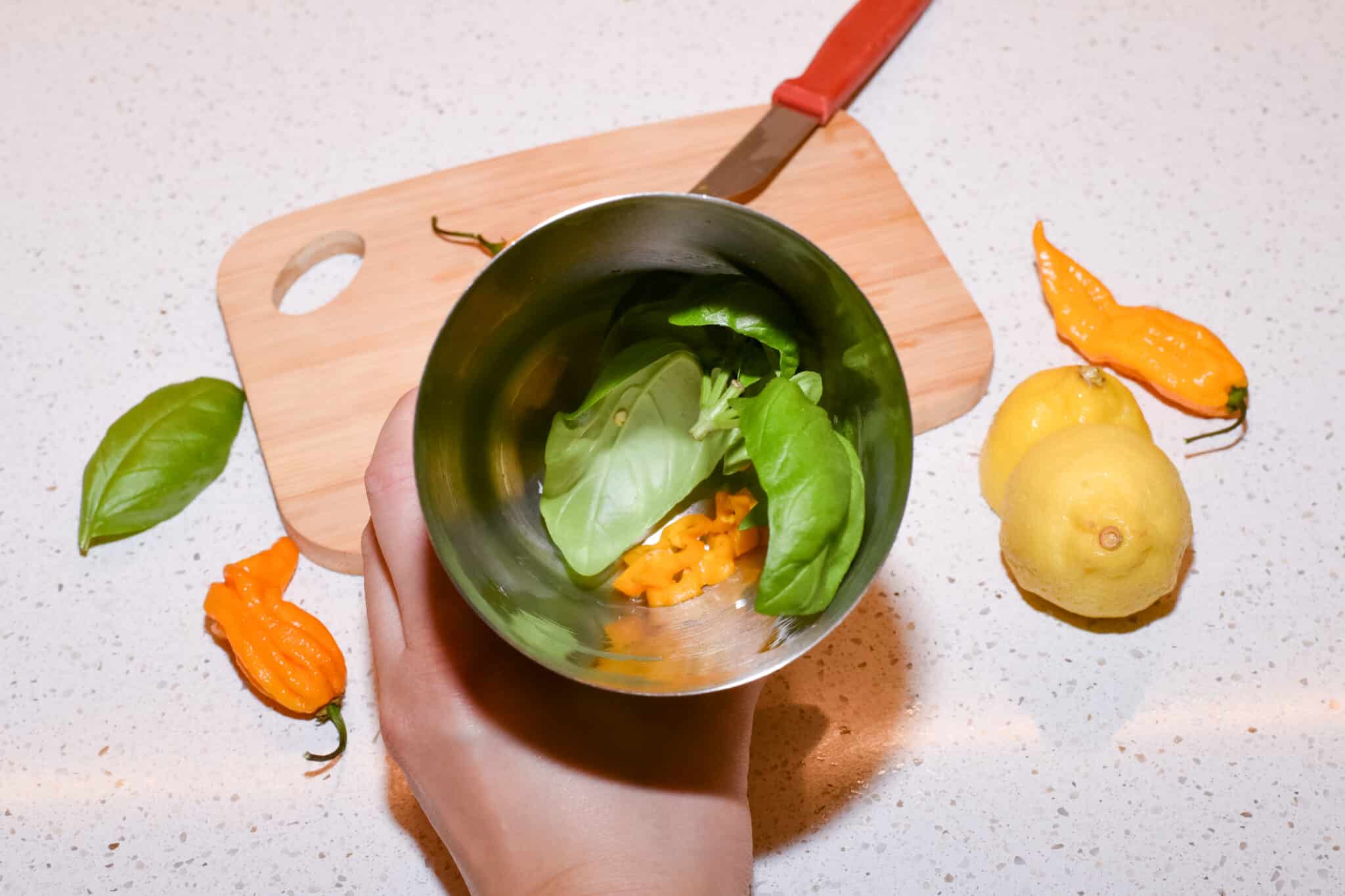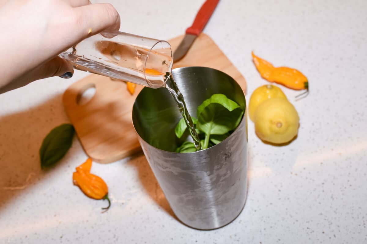 U shakeru zdrobite pola šake bosiljka i narezanu Fatalii papričicu.