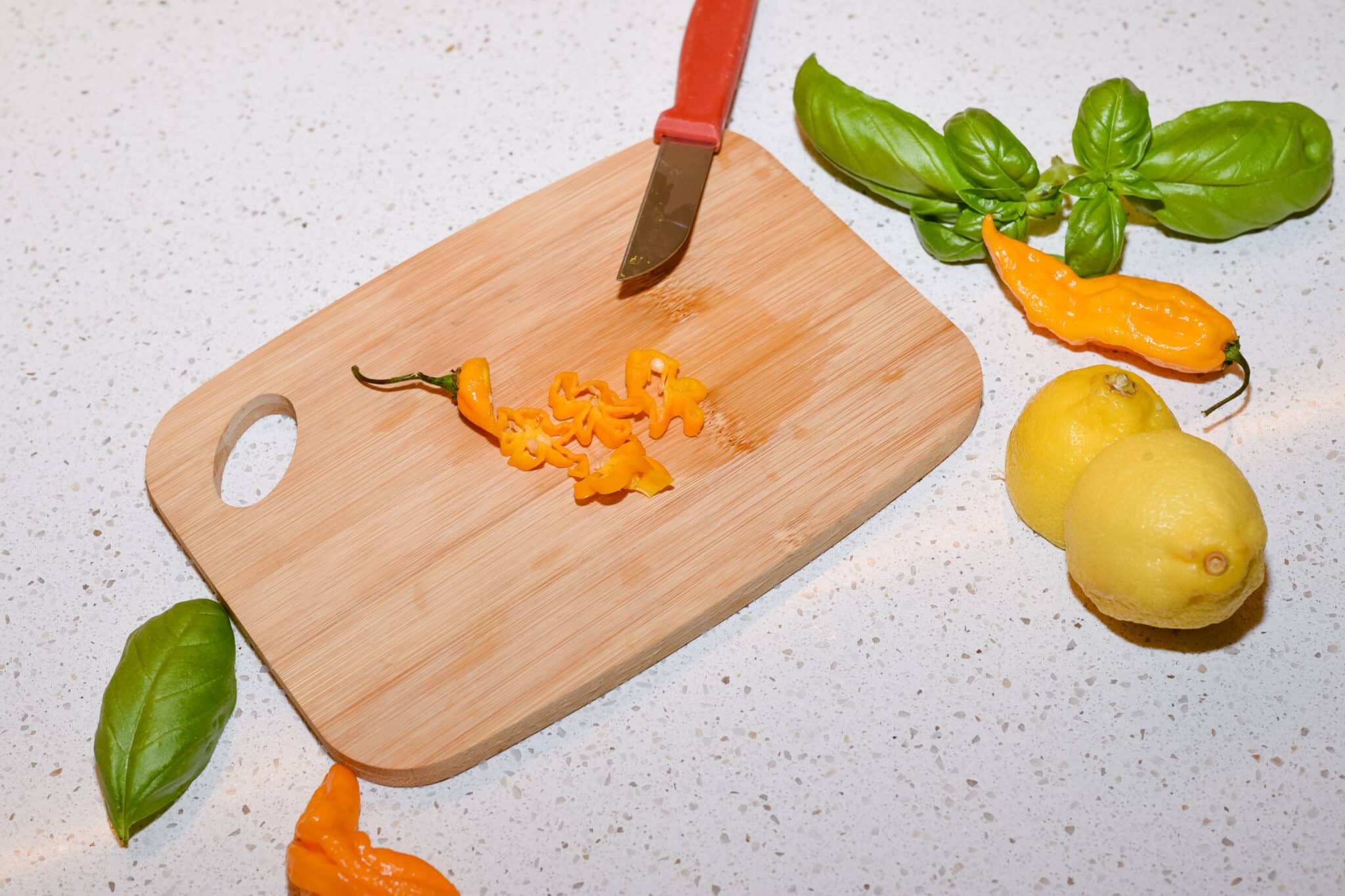 Ukrasite kolutićem Fatalii svježe papričice i listovima bosiljka.