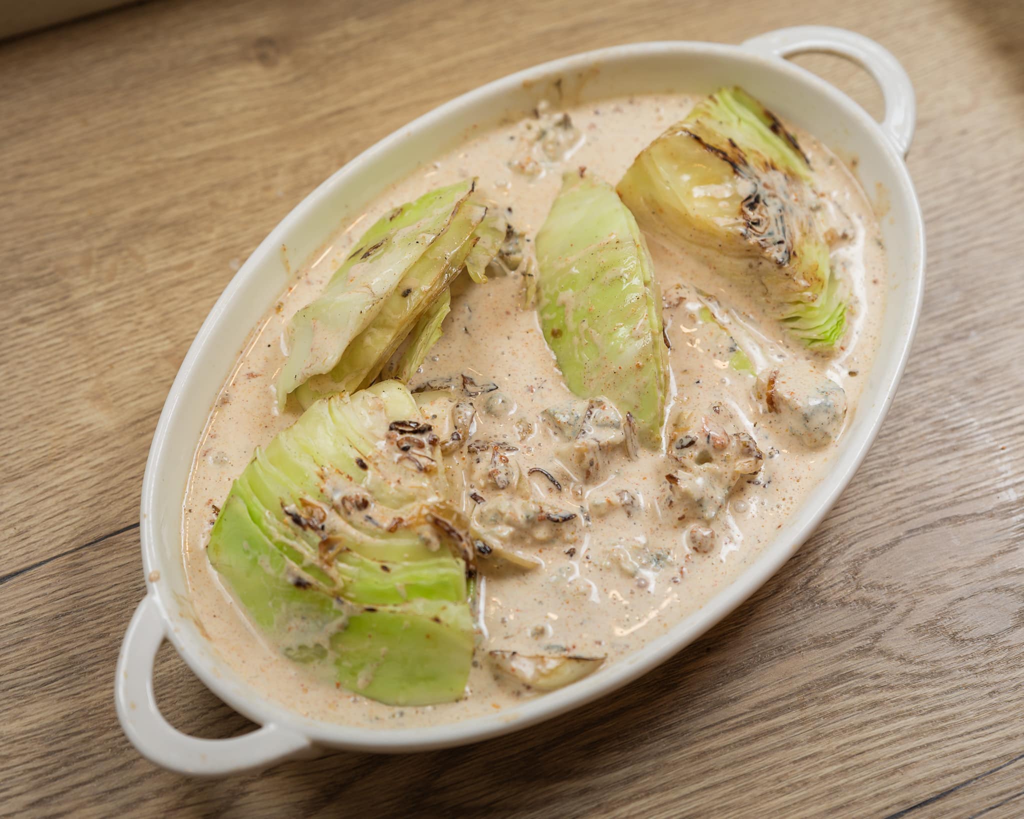 Ovo jelo nastalo je skroz spontano. Vidjeli smo ideju negdje na netu i rekli, ‘ajmo probati! Nismo bili sigurni kako će ispasti i skoro ga nismo ni planirali staviti ovdje, ali kad smo prvi put zagrizli, bilo nam je jasno da je recept koji apsolutno moramo podijeliti s vama. Ključ uspjeha je da kupus bude dovoljno vremena u pećnici. Kada se lijepo zapeče i iskombinira s gorgonzolom i orasima postane nešto totalno neočekivano i ne-dosadno!