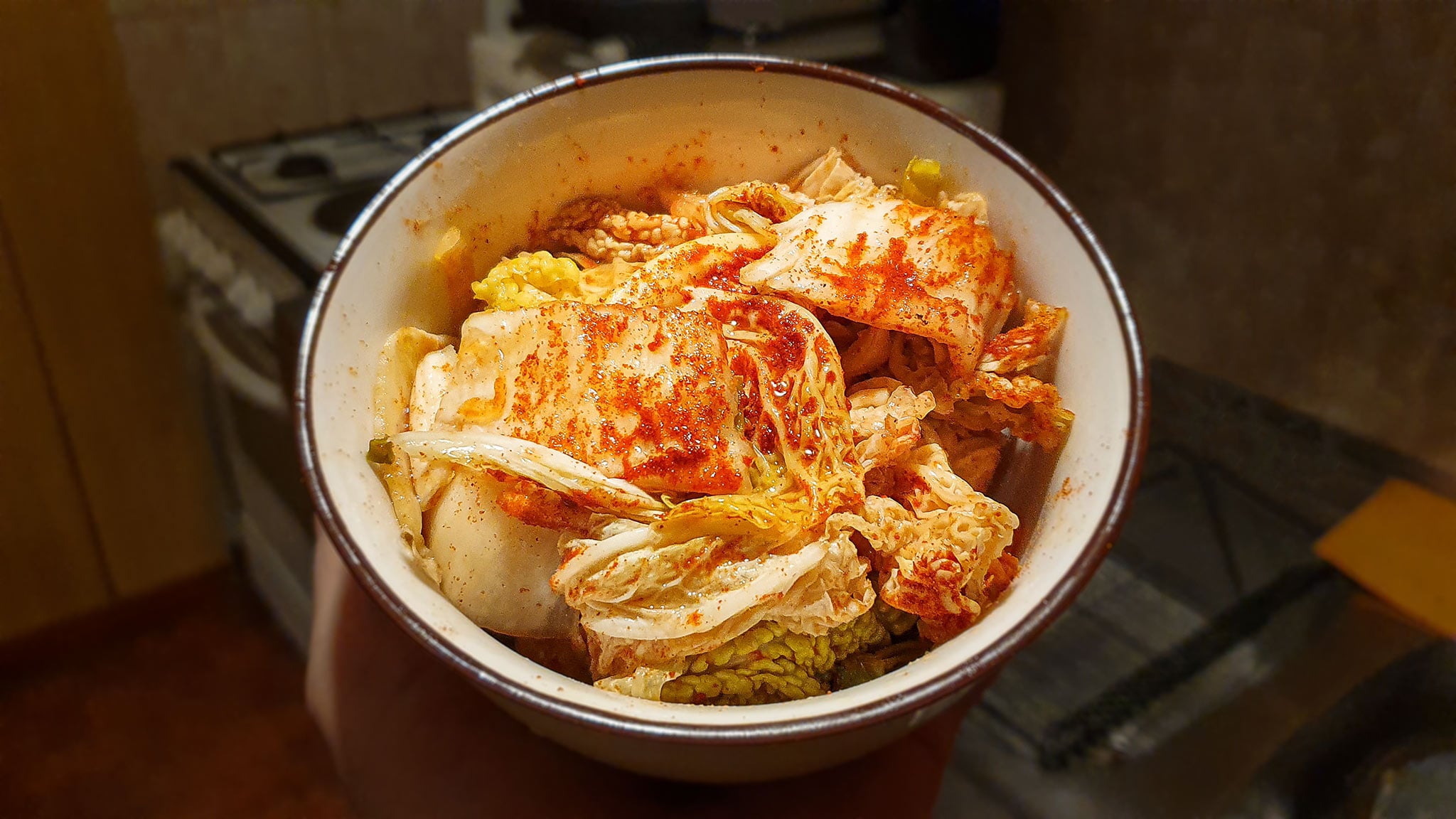 Ovo jelo u osnovi nije vegansko zbog ribljeg umaka i pasti, no kako smo rekli, niti jedan kimchi recept ne slijedi egzaktan sastav. Ono što je bitno je pravilna fermentacija da bi se probiotičke čari razvile, a sve ostalo je prepušteno vašoj kreativnosti.