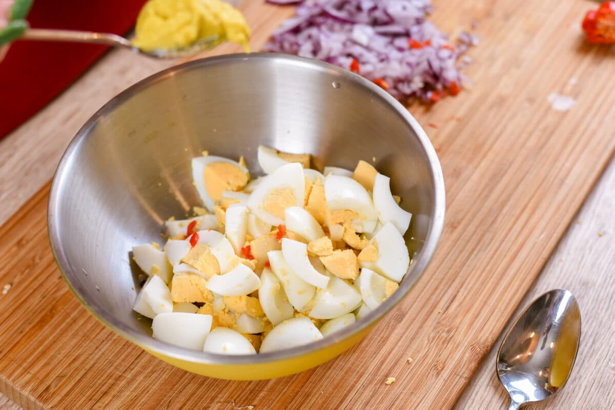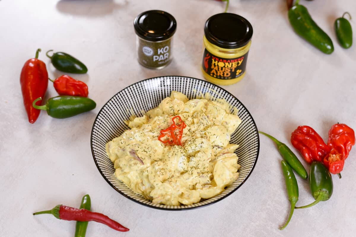 Ako vam je salata od jaja dosadna, pripremite se za iznenađenje! Ova verzija uključuje ljute papričice koje će probuditi vaše nepce, uz honey mustard umak koji pruža savršenu ravnotežu između slatkog i pikantnog.