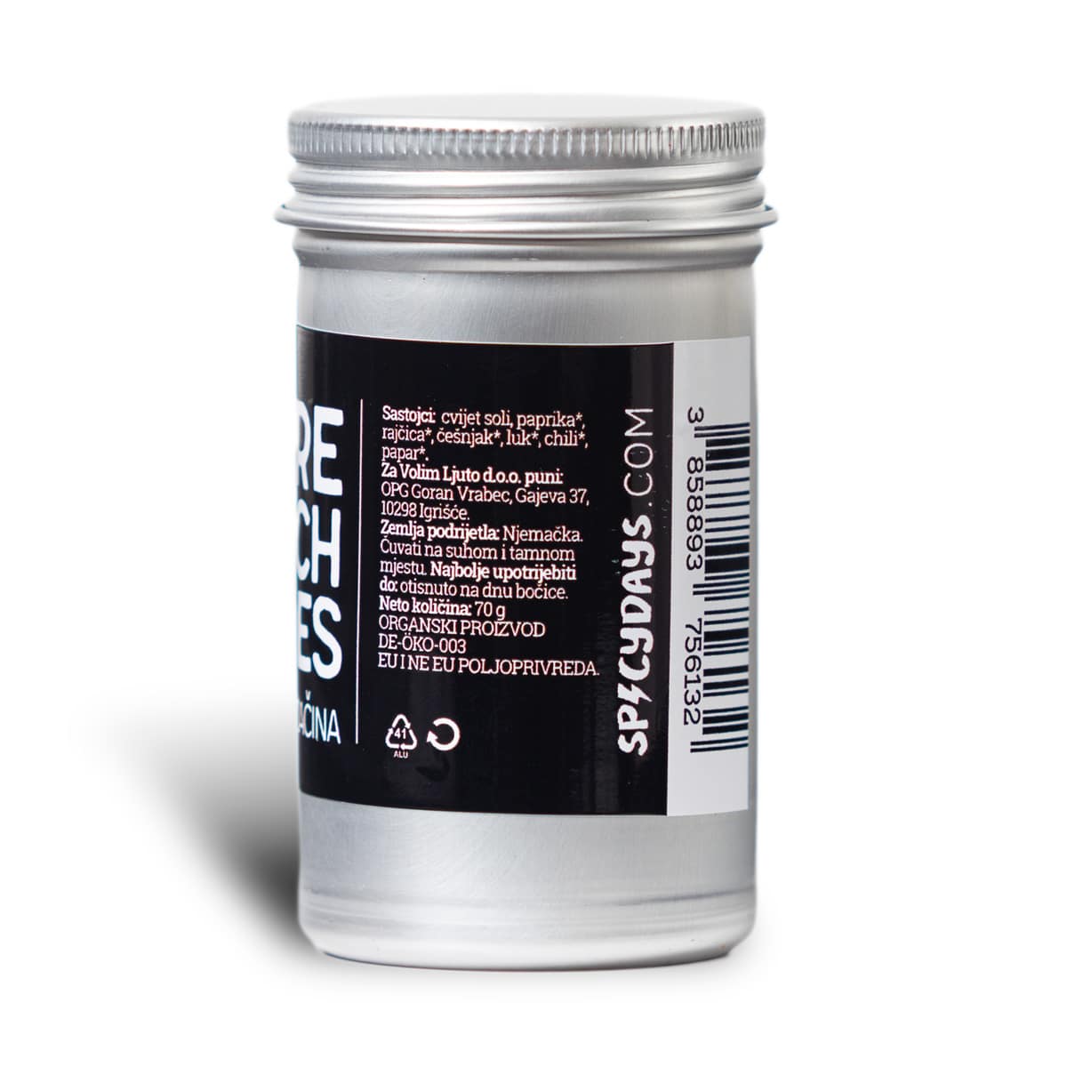 Sastojci: cvijet soli, paprika*, rajčica*, češnjak*, luk*, chili*, papar* – * = začin iz EKO uzgoja