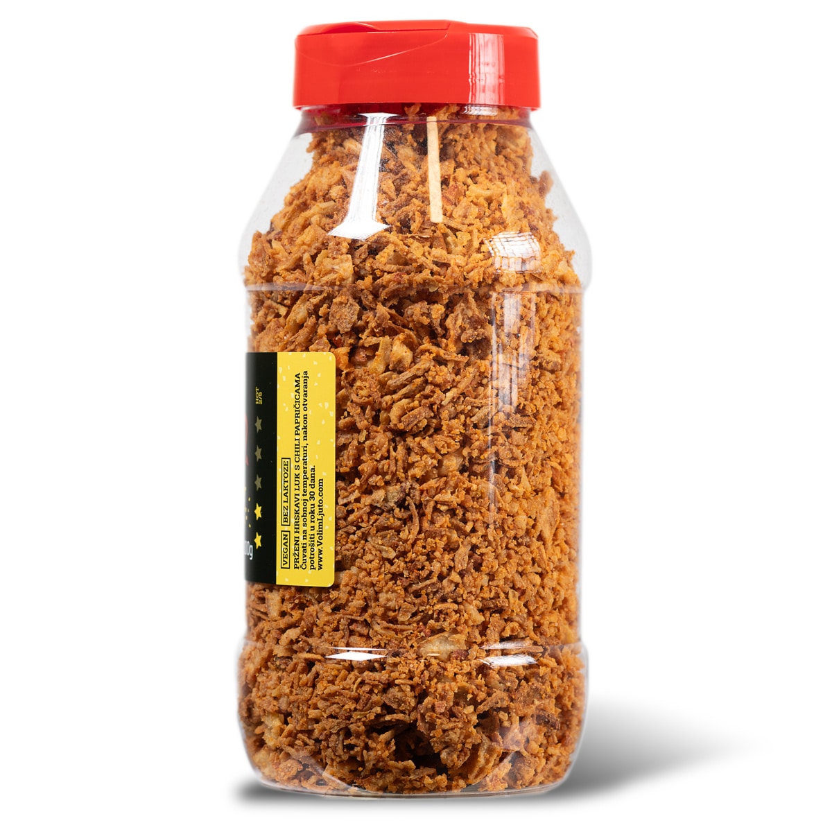 Hellfire Crispy Onion prženi je luk koji smo pomiješali sa chili papričicama kako bismo dobili laganu dozu ljutine, a zadržali onaj prepoznatljiv okus luka. Prženi luk možete koristiti kao dodatak sendvičima, hot dogovima ili već gotovim jelima, a jelima će dati okus (nećete vjerovati) luka sa dozom ljutine i arome chili papričica! Ne, neće vam biti preljuto, bit će baš onako kako treba biti! U ovom većem pakiranju, definitivno je količinski dovoljan onima koji sendvič ne mogu zamisliti bez ovog posipa.