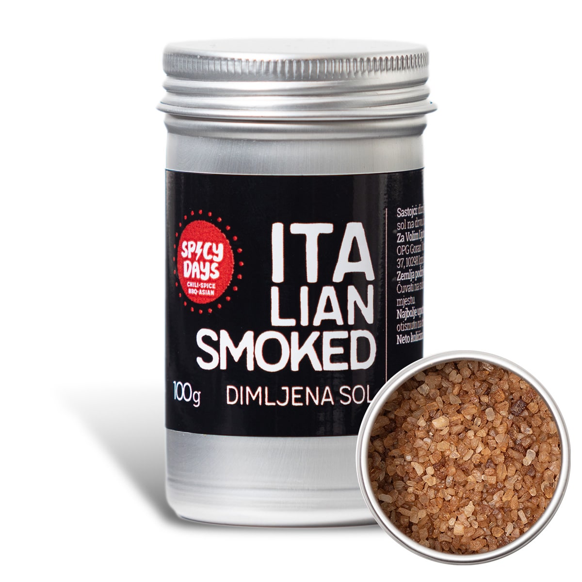 Italian Smoked salt ili talijanska dimljena sol je prirodna morska sol koja se 5-6 dana dimi na pravom, neobrađenom iverju bukve. Taj proces dimljenja soli daje intenzivnu aromu dima i okus dima koji podsjeća na svježe dimljenu hranu.